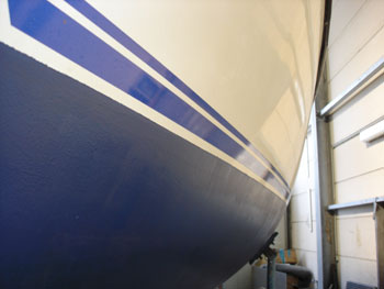 Nachfoldend das noch unbehandelte und das gestrichene Unterwasserschiff: