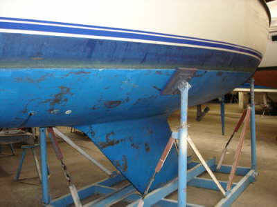 Für die nächste Saison mach ich 2 Schichten Antifouling drauf! Da kommt der alte Anstrich schon wieder durch!